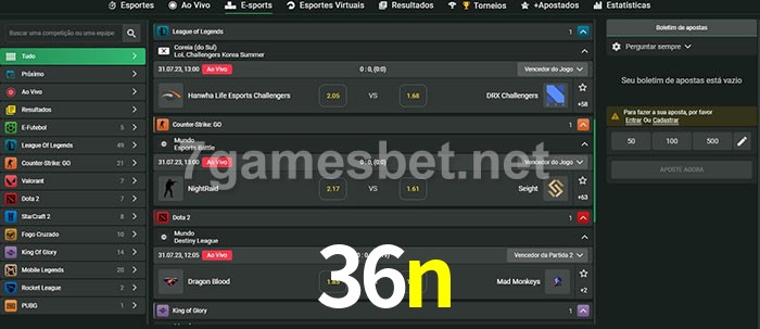 A aposta 36n oferece aos jogadores a experiência mais conveniente de apostas em eSports!